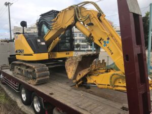 重機の移動は大型のセルフを使って道路を走ります。
