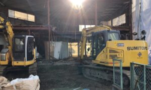 木造住宅の解体が終わり、鉄骨の倉庫の解体に入っています。